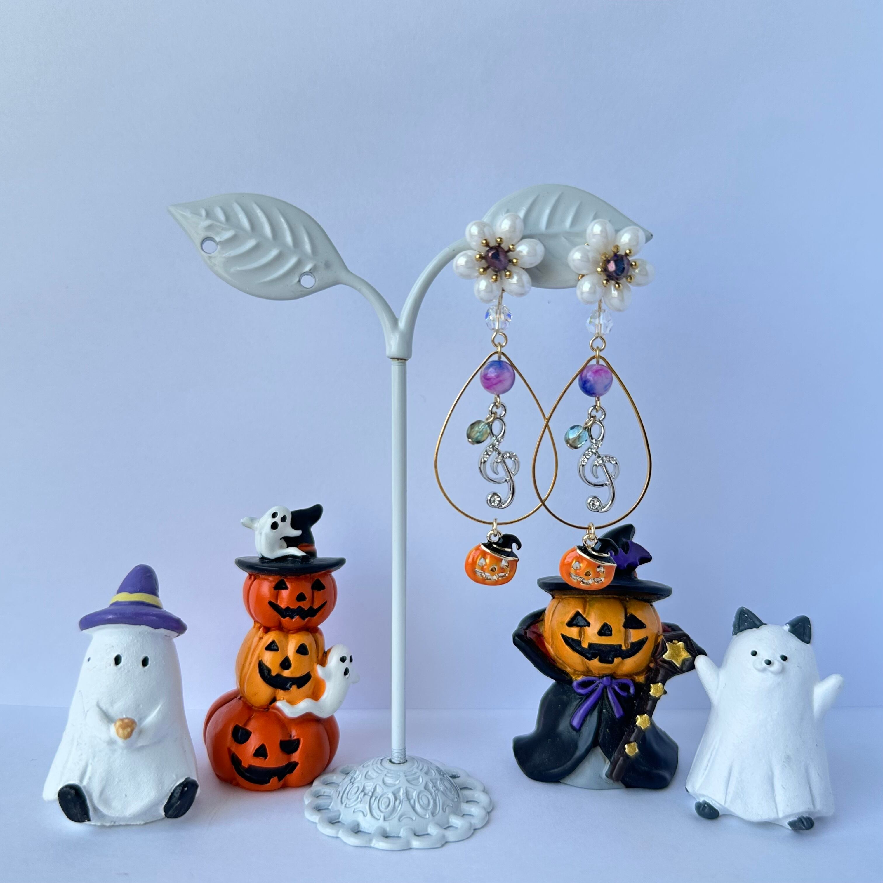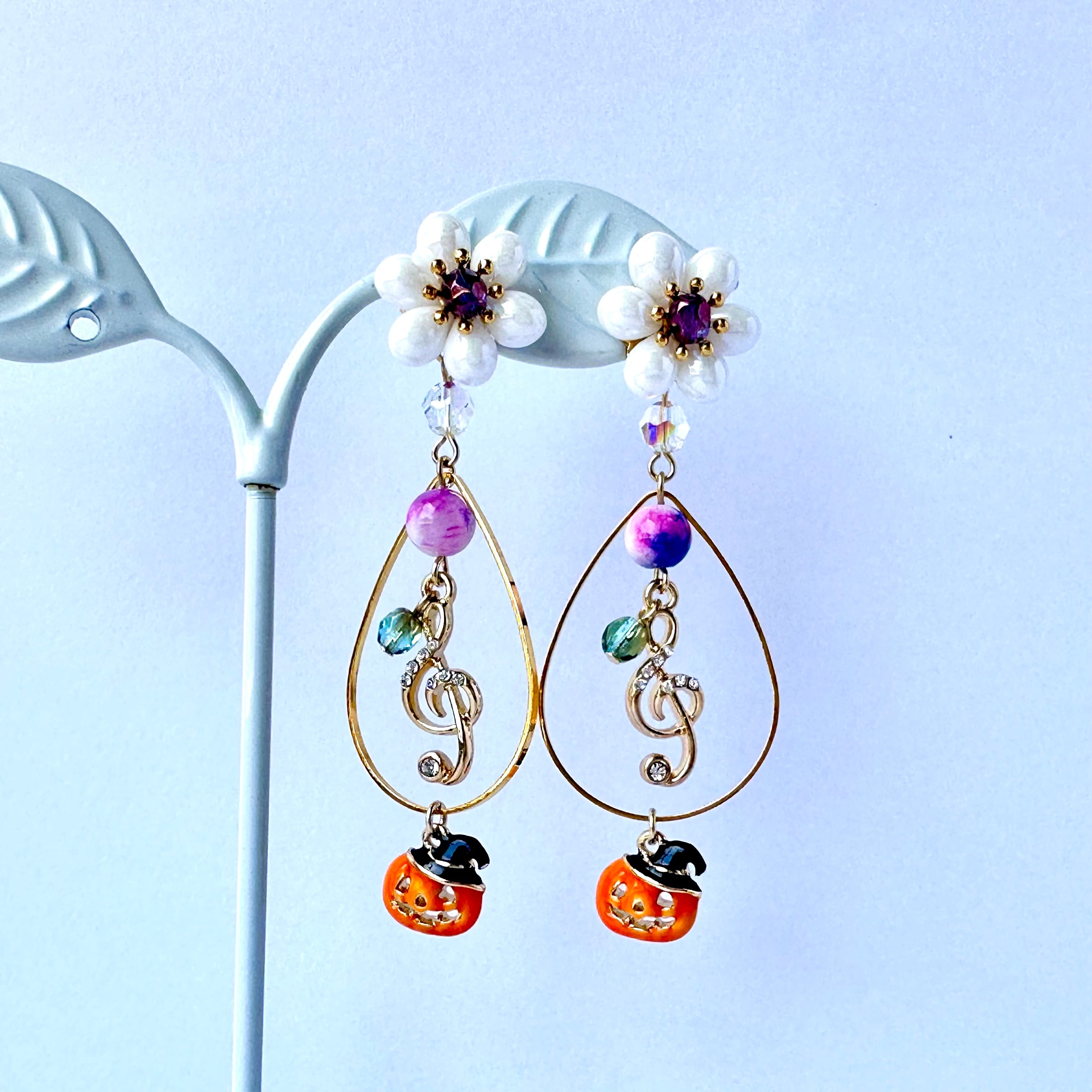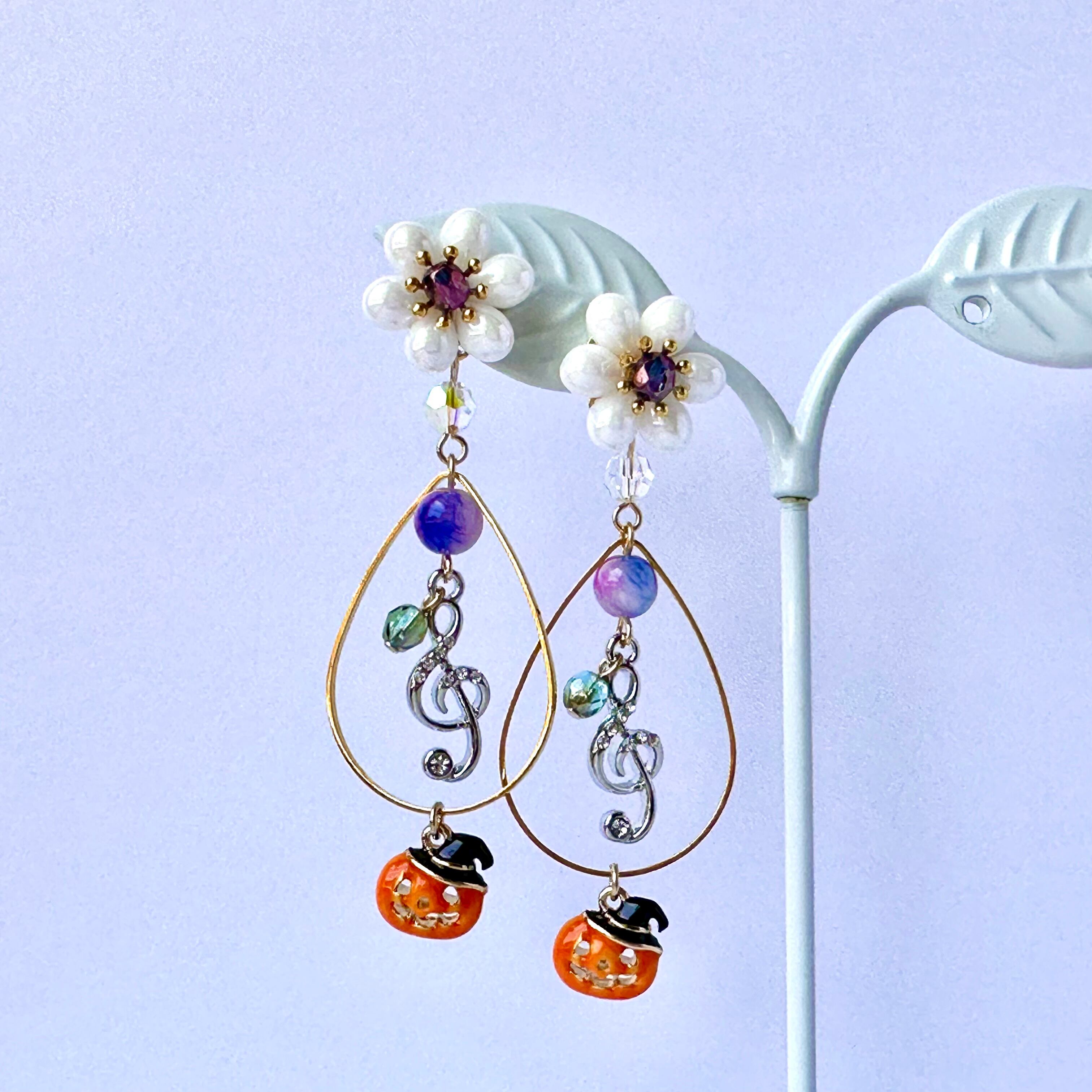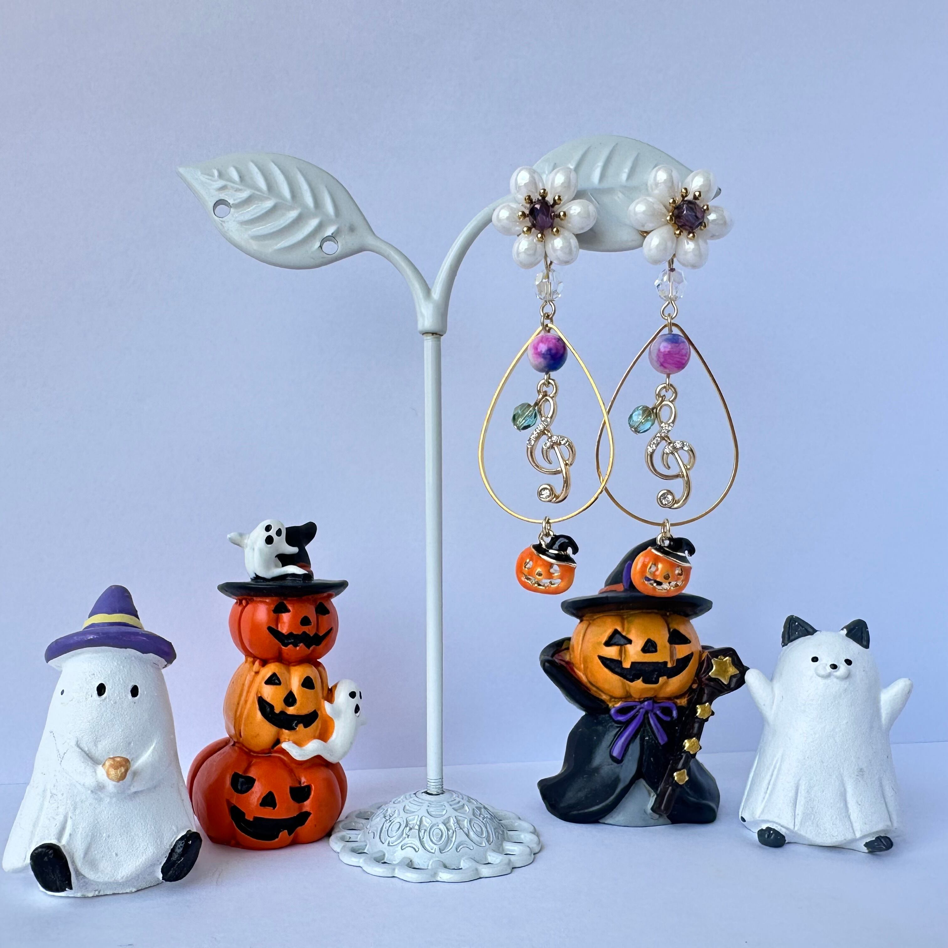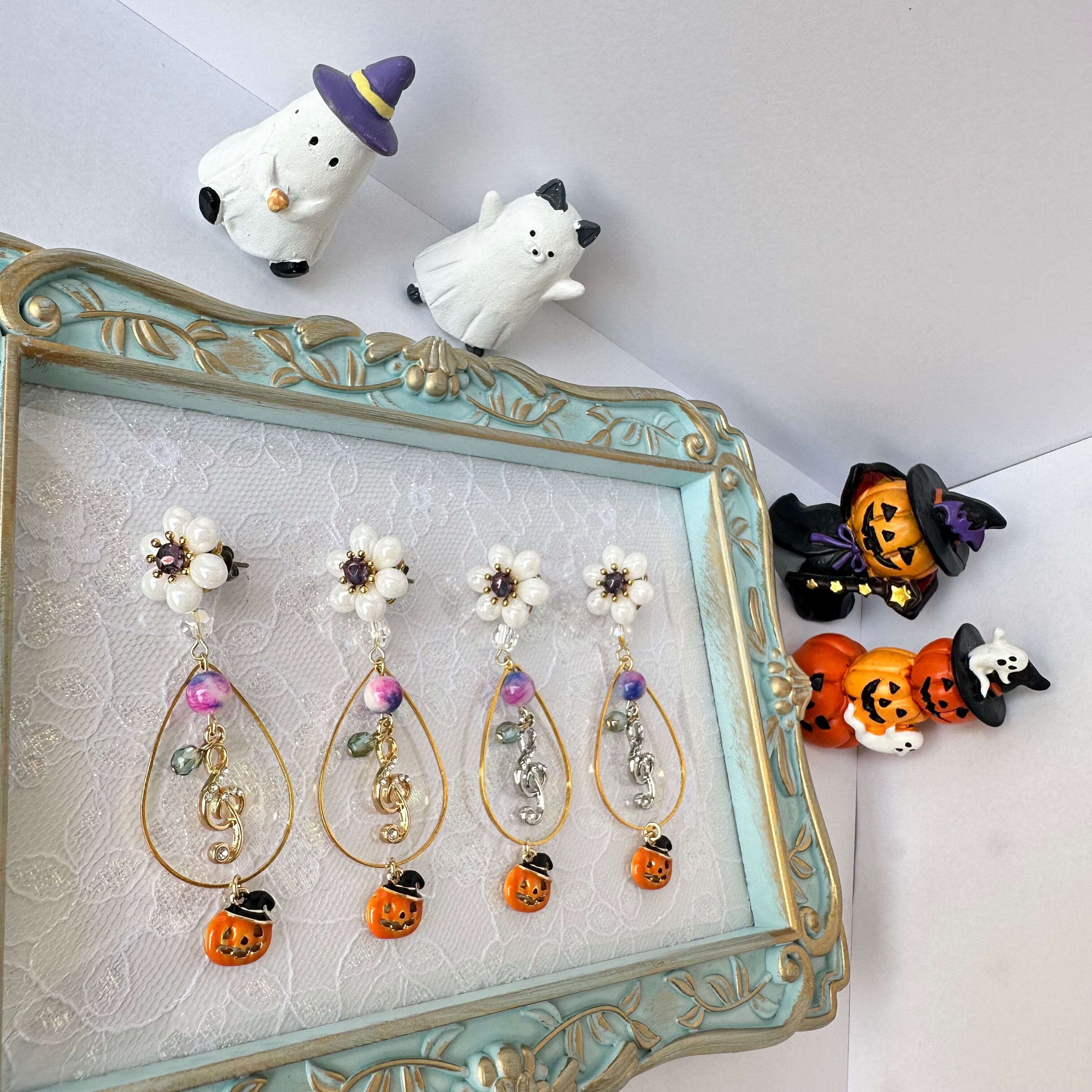 ト音記号のチャームと、可愛いおばけかぼちゃのチャームを組み合わせて、特別なハロウィンアクセサリーが完成しましたよ♪