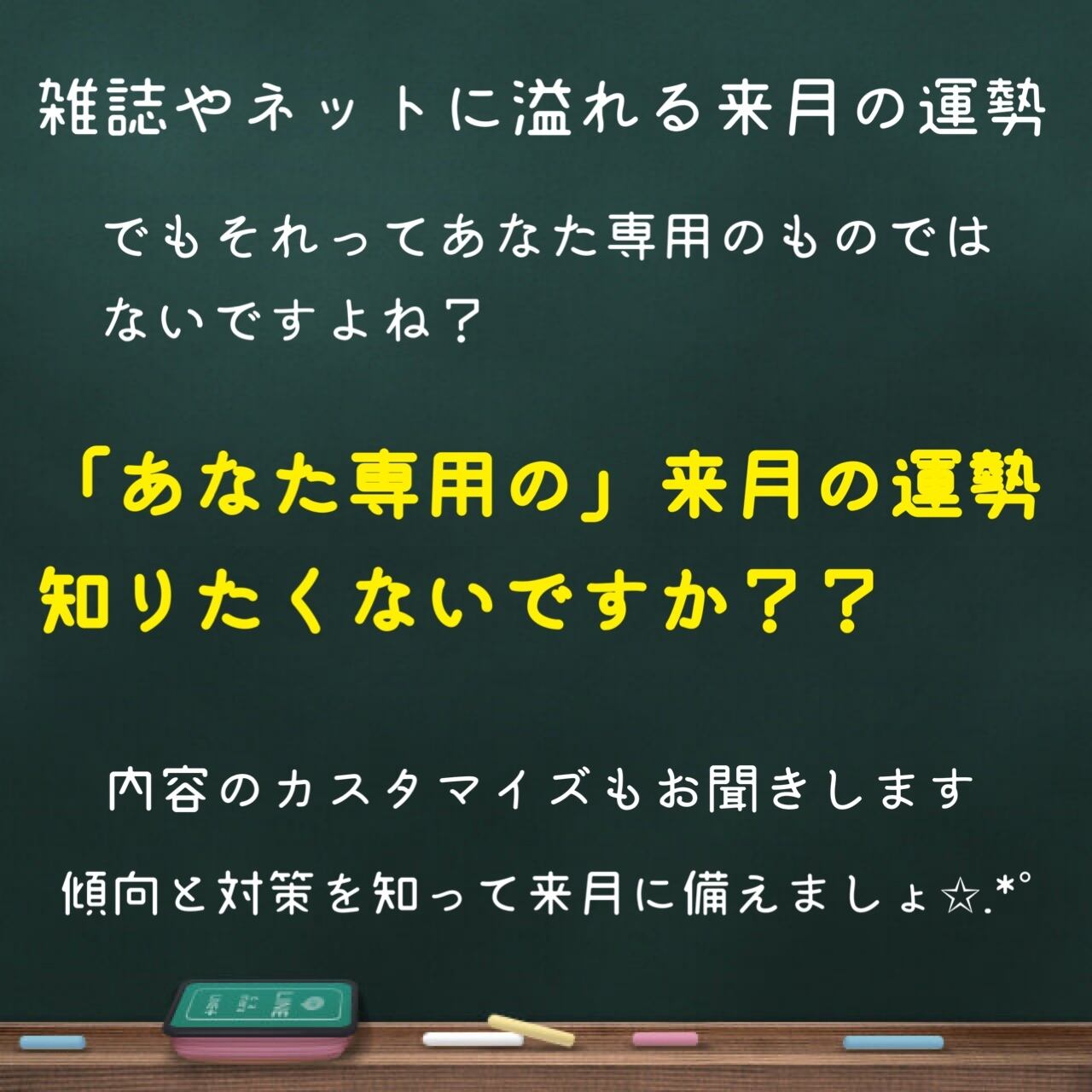 好きな人がいる、などで特定の見て欲しいお相手がいる場合は、恋愛運と合わせてその方との来月の様子をリーディングする事も可能です。