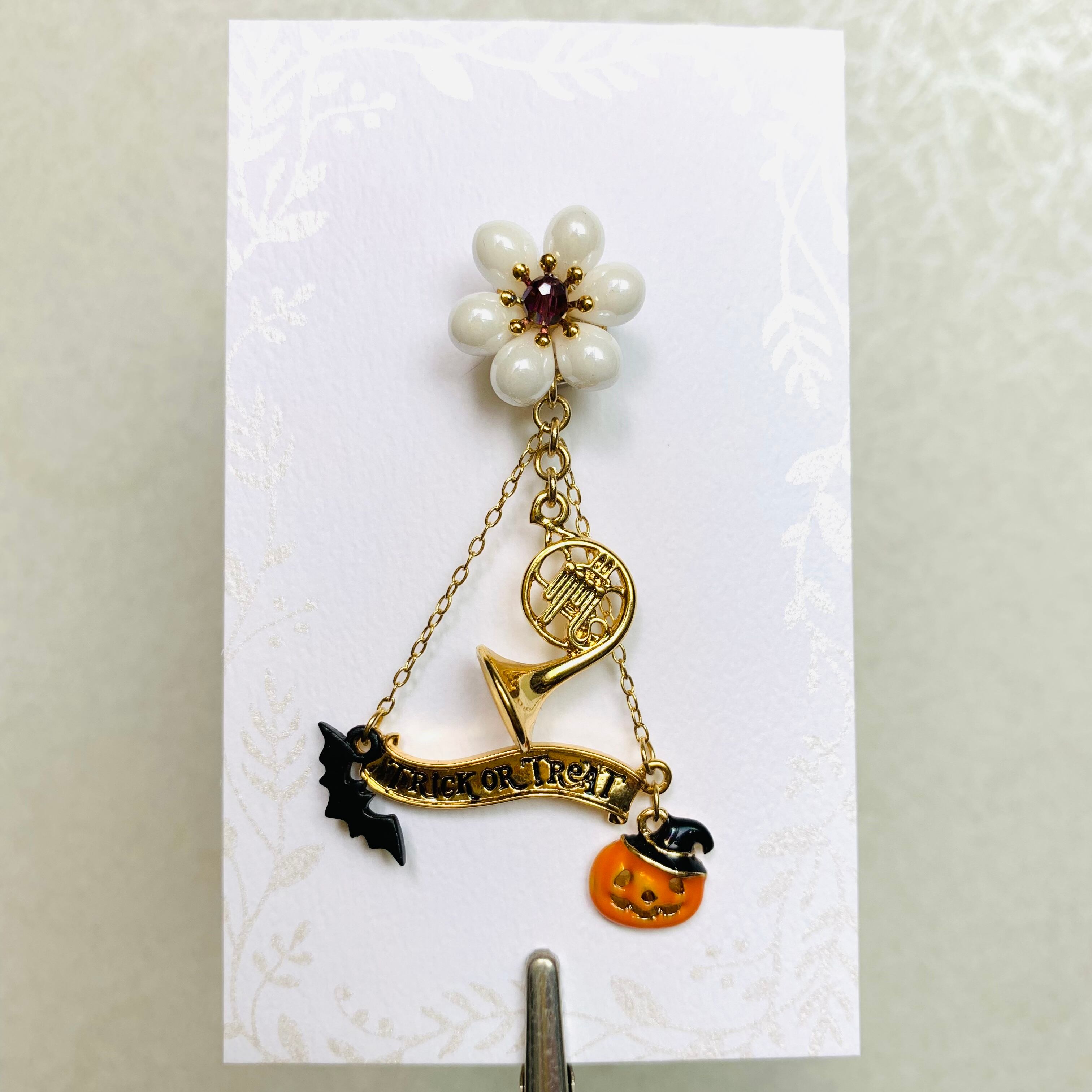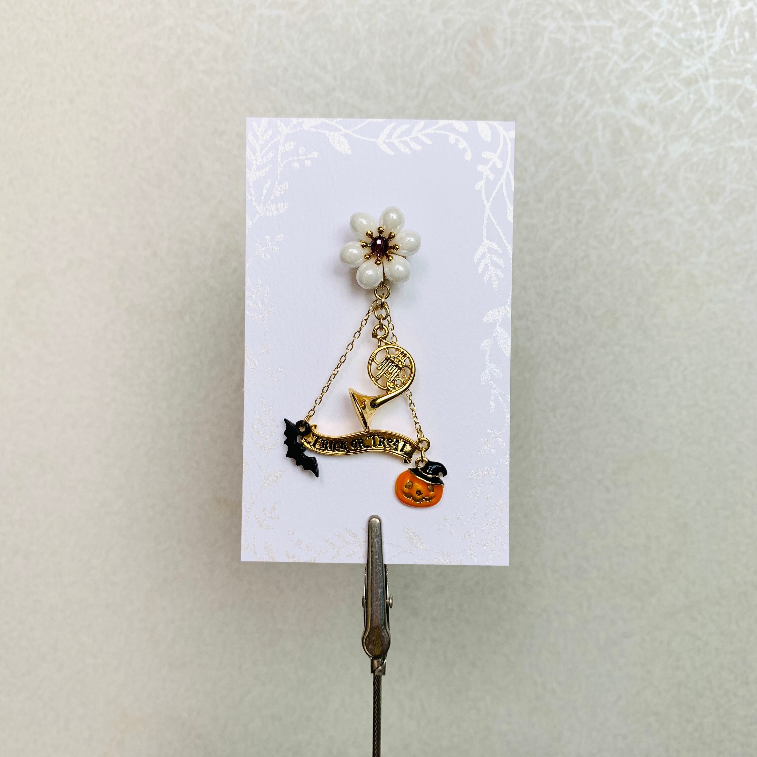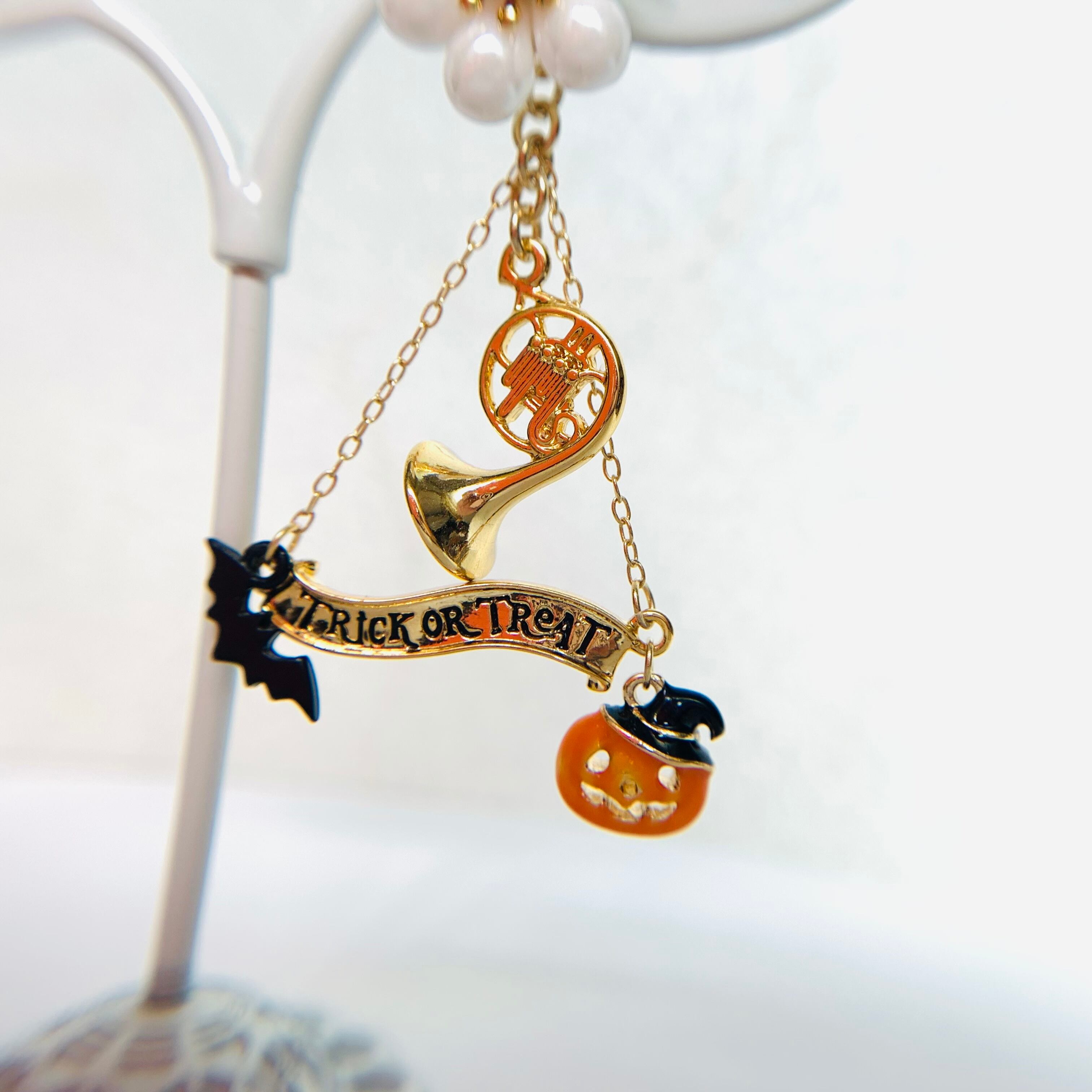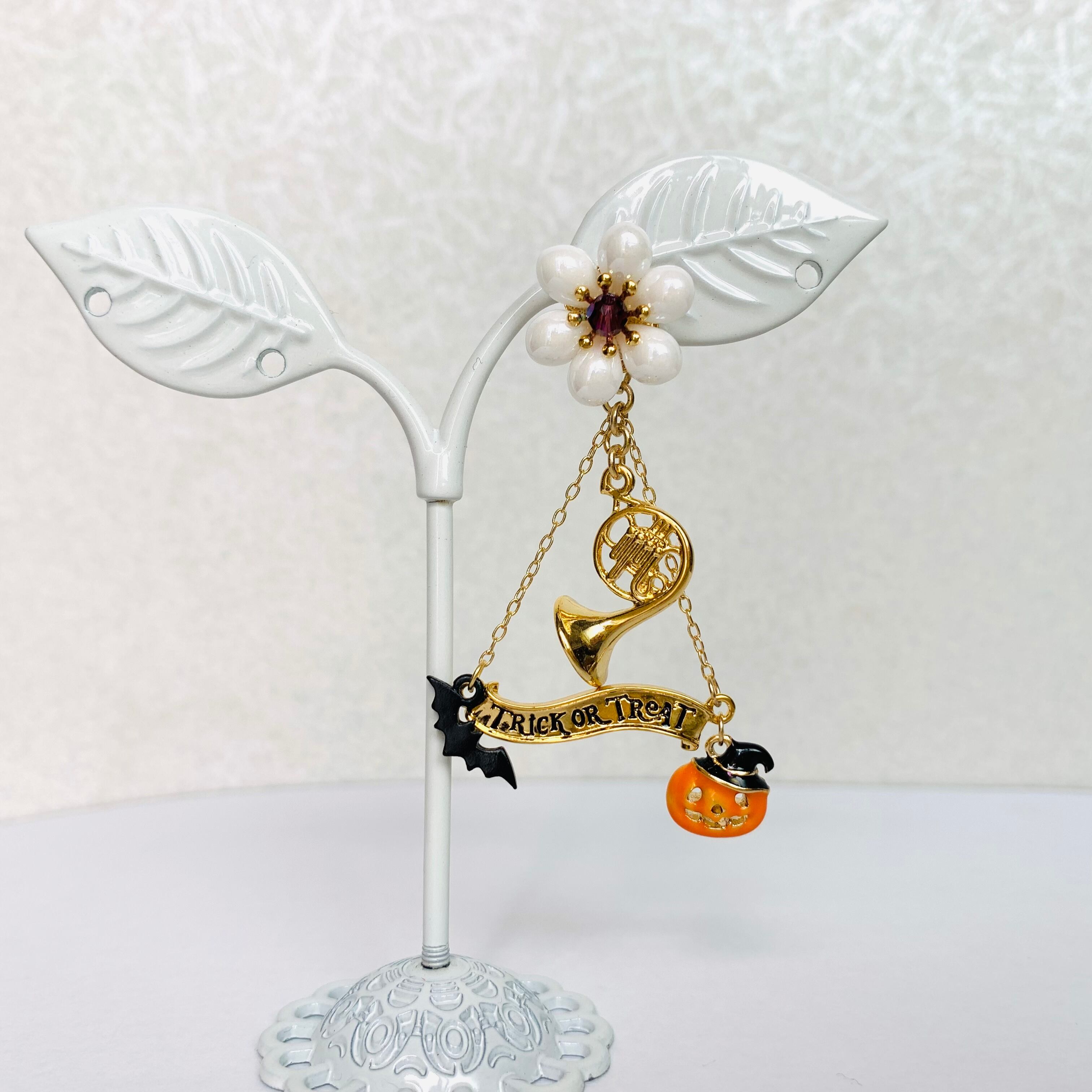 「TRICK OR TREAT」の旗もついて、ピアスに比べるとハロウィン色が強いかもしれません。