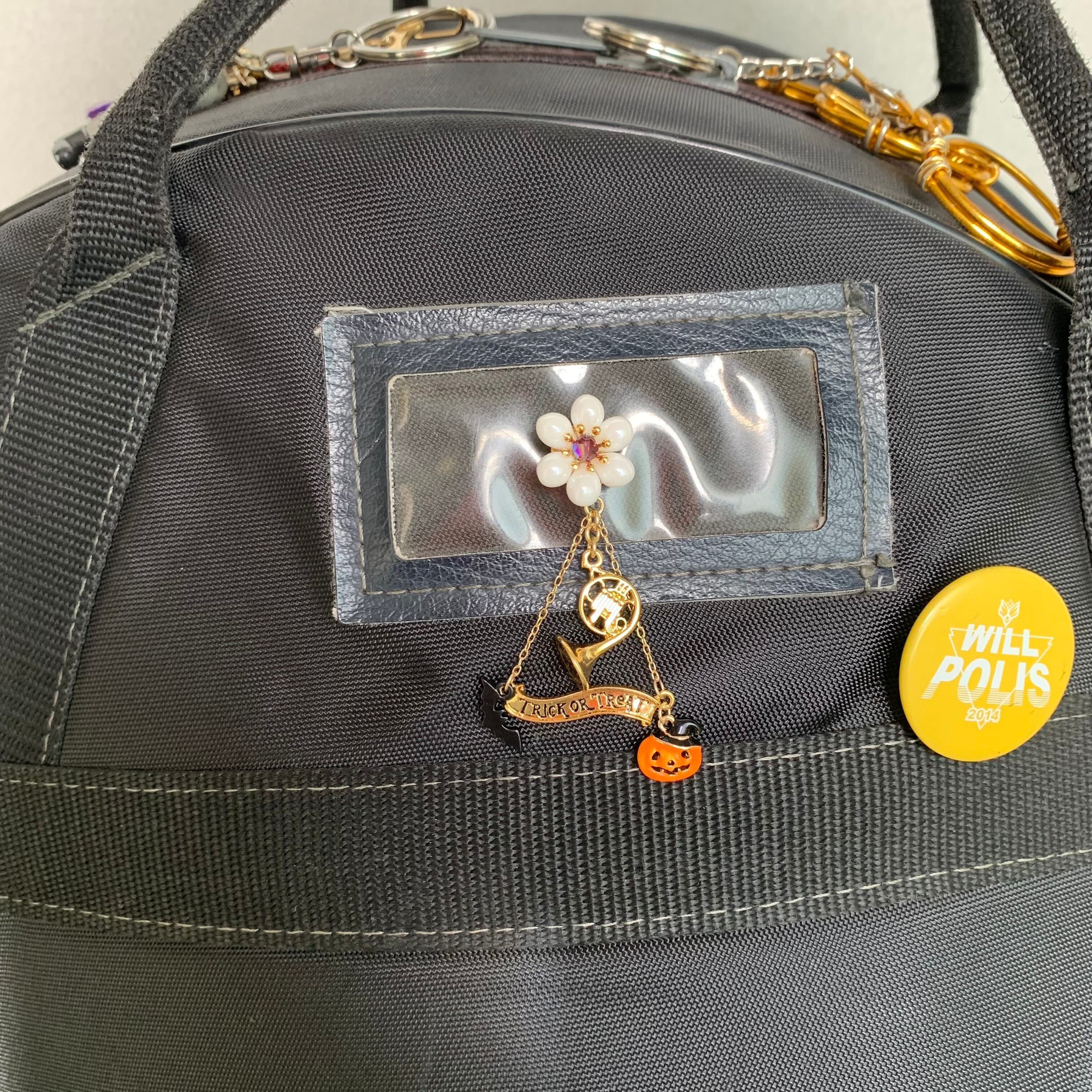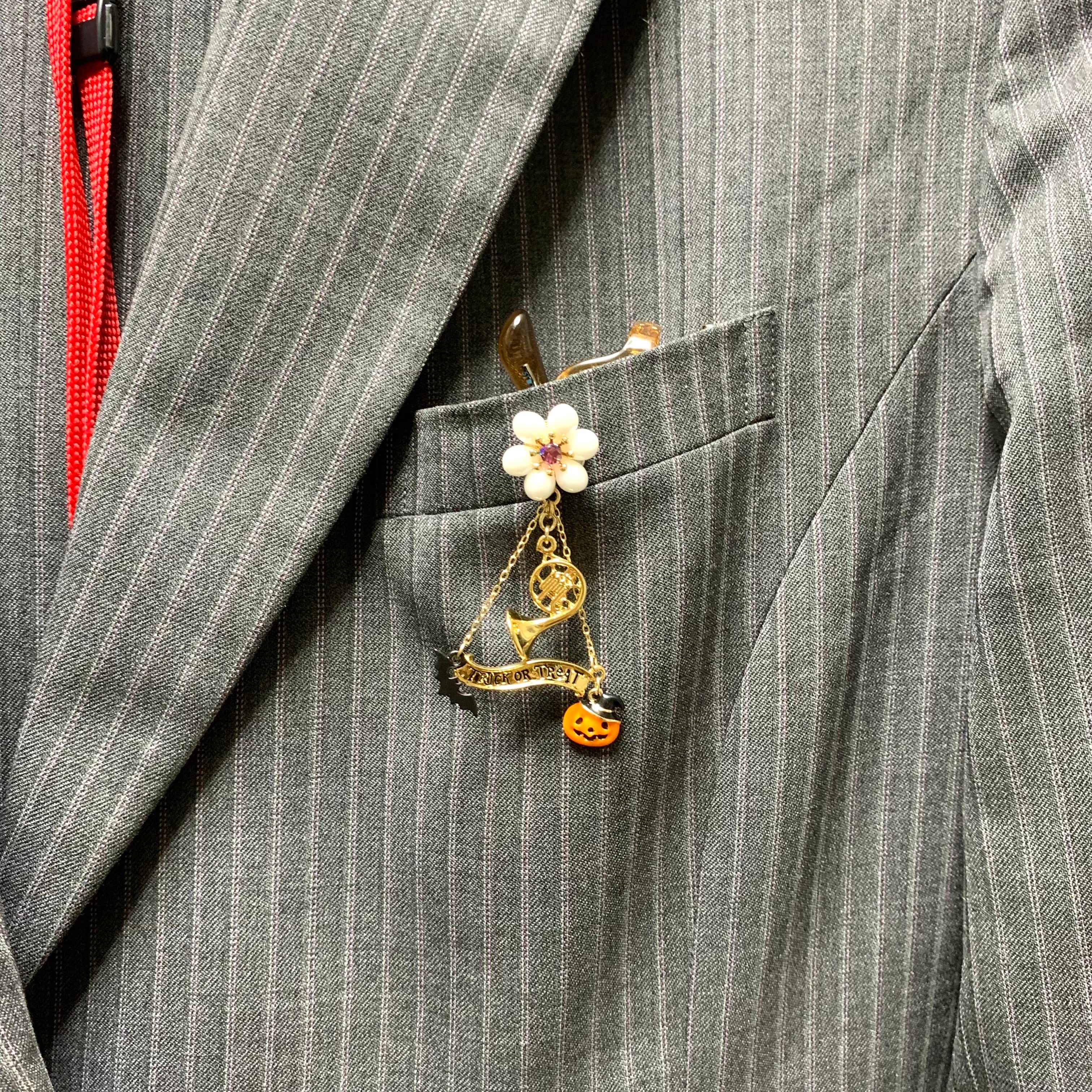 スーツの襟やブラウスの胸ポケットに付けるもよし、リュックやランチバック、楽器ケースに付けてもよしと、服だけでなくいろんな場所につけていただけます♪